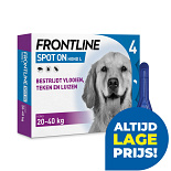 Met Frontline bescherm je je hond of kat tegen parasieten zoals vlooien, teken en luizen. Frontline is verkrijgbaar in handige pipetten of als spray. Frontline werkt snel en doodt vlooien al binnen 24 uur en teken binnen 48 uur. Frontline heeft een langdurige werking en beschermt je kat tot wel 5 weken tegen vlooien. Voor honden werkt Frontline zelfs tot 2 maanden tegen vlooien. Daarnaast is je huisdier tot een maand beschermd tegen teken.