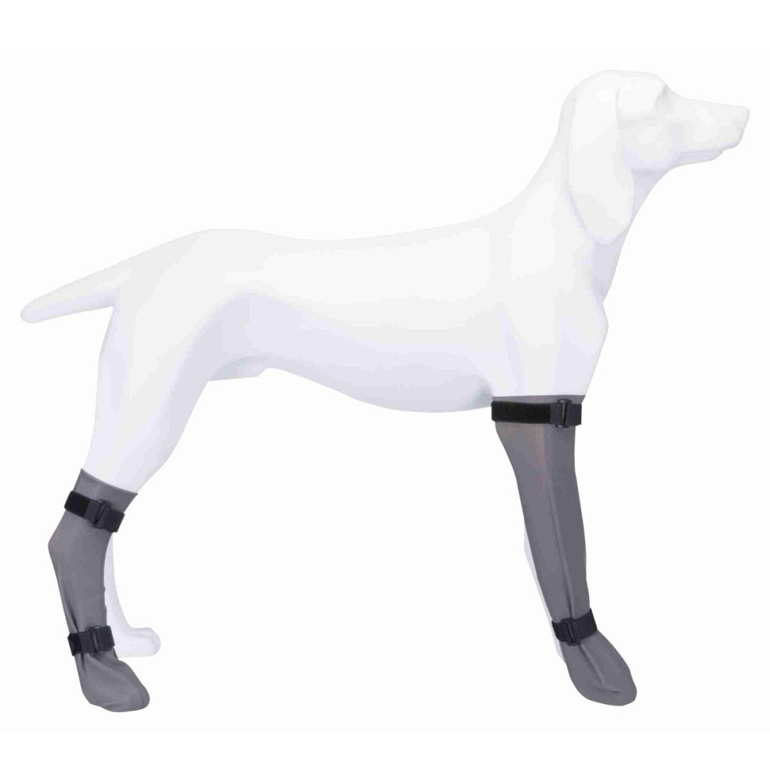De beschermsok voor de hondenpoot is geschikt voor zowel de voor- als de achterpoten en kan dankzij de aparte klittenbandsluitingen overal stevig worden vastgemaakt.