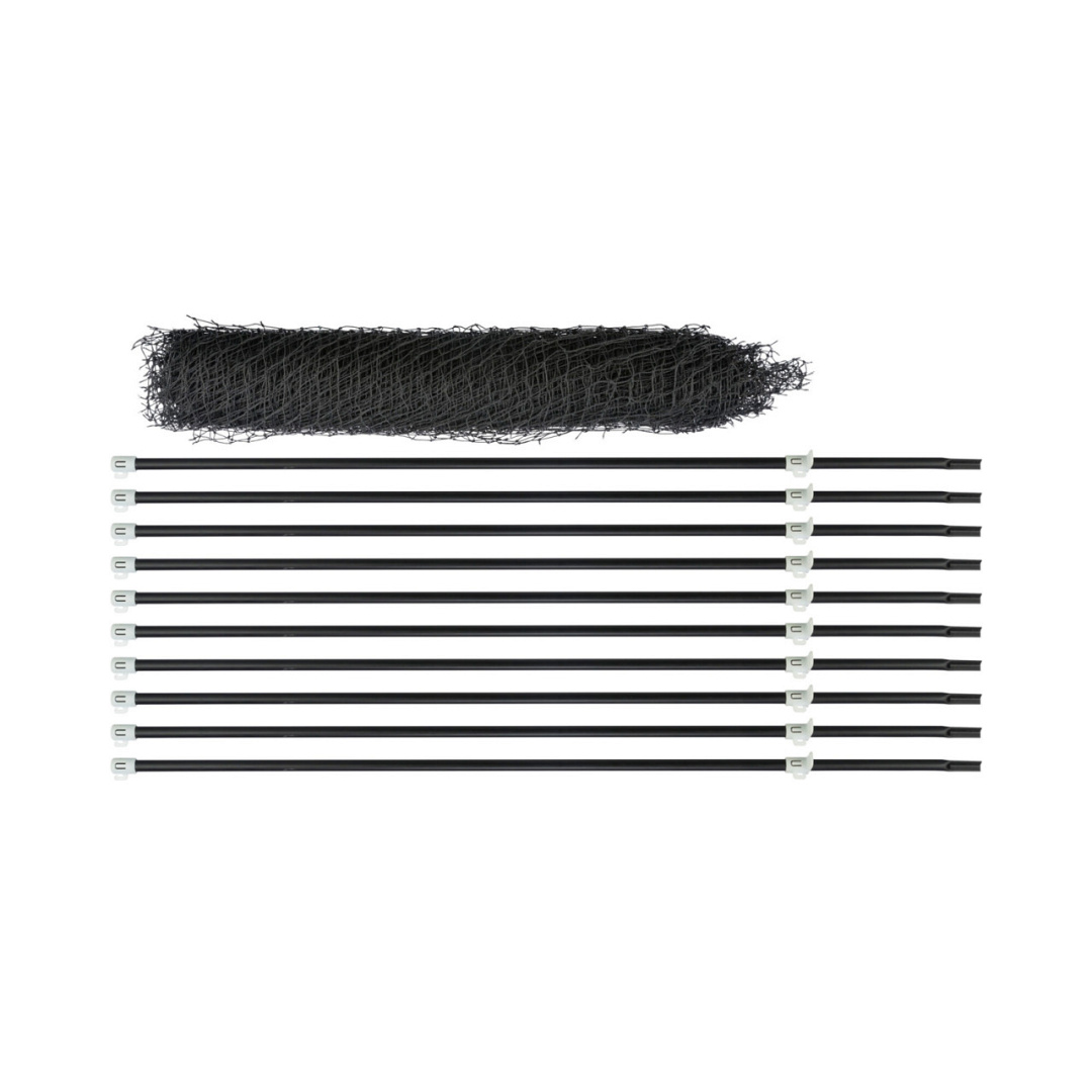 In de verpakking zit 15 meter net en 10 palen van elk 1m lengte (20 cm punt voor optimale houvast in de grond). Palen kunnen individueel verdeeld worden.