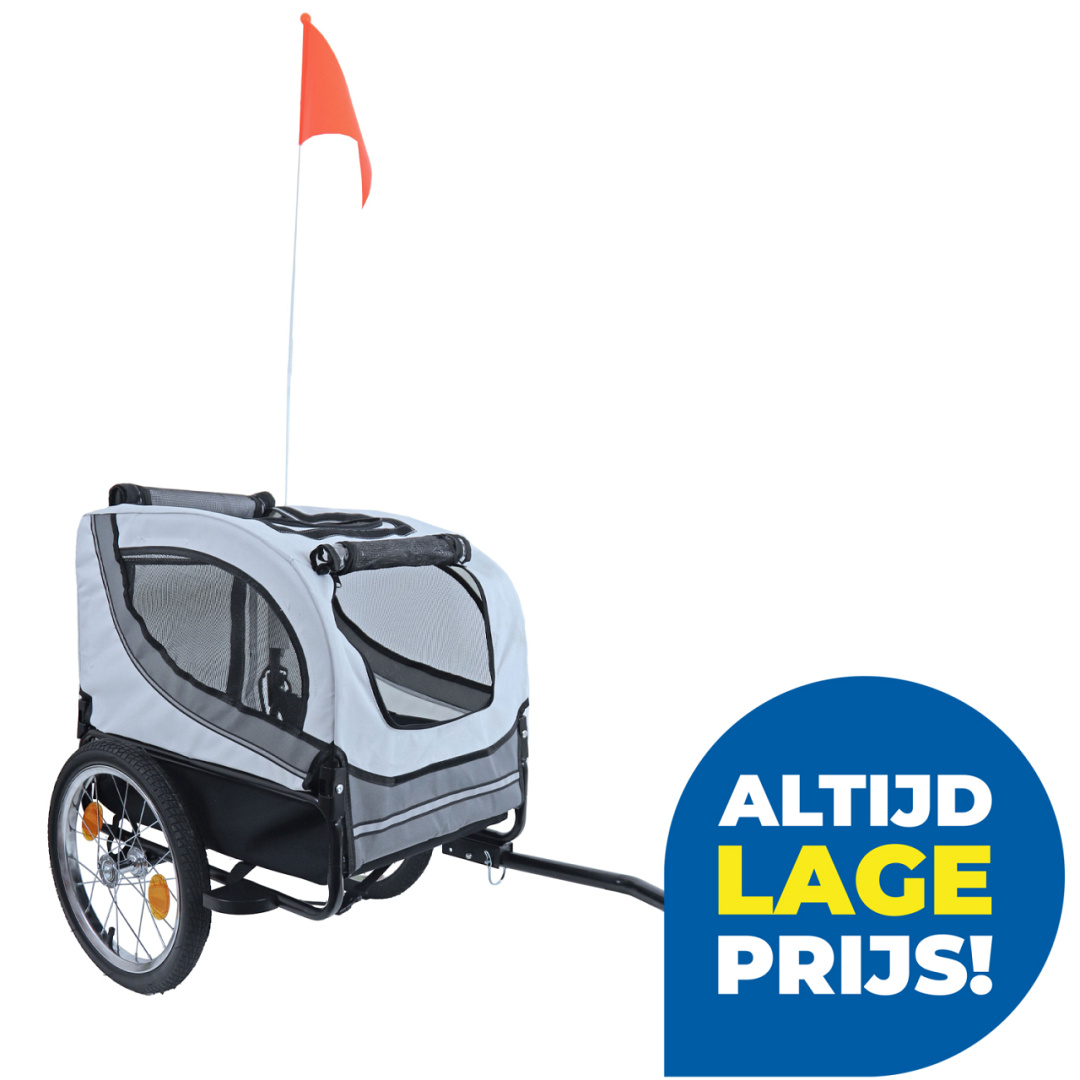 Dankzij de geïntegreerde wielbeschermers, welke bevestigd zitten vóór de wielen op het stijlvolle zwarte frame, blijven de wielen veilig en beschermd en voorkomen zo schade aan de kar bij bijvoorbeeld een stuurfoutje. Het reflecterende bovendoek garandeert optimale zichtbaarheid. De geïntegreerde aanlijnpunten zorgen ervoor dat jouw hond altijd kan worden aangelijnd tijdens een fietstocht, zodat hij of zij veilig kan worden vervoerd. Daarnaast is de fietskar voorzien van een extra lage instap aan de achterzijde, zodat het gemakkelijk is voor iedere hond om in de fietskar te stappen.Door middel van de trekstang kan de fietskar gemakkelijk aan iedere fiets met een bereikbare achteras worden gemonteerd.