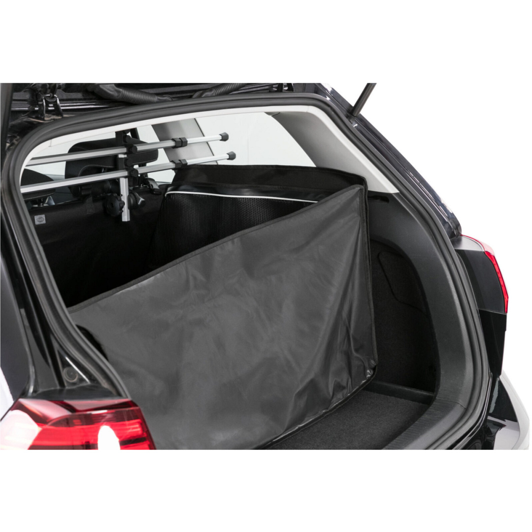 De TRIXIE kofferbakdeken heeft hoge zijkanten die de kofferbakbekleding beschermen. De deken wordt bevestigd aan de hoofdsteunen met gordels en aan de zijkanten met klittenband.
