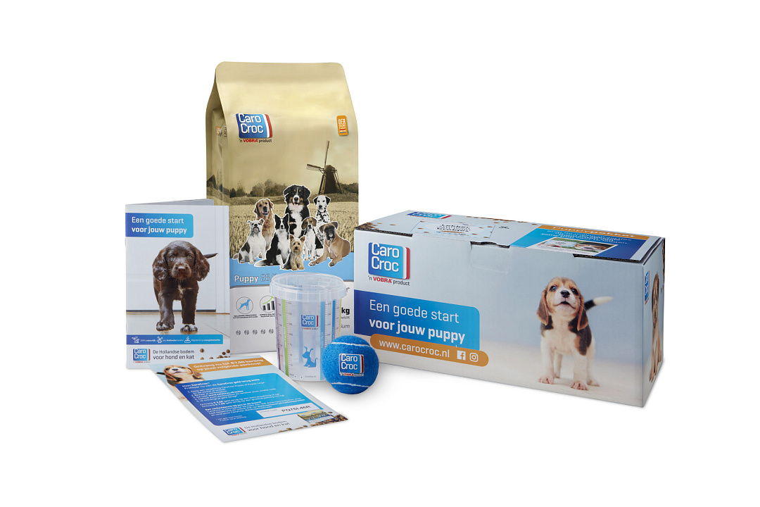 Met het CaroCroc Puppypakket biedt je jouw puppy de perfecte start. Het pakket is geschikt voor puppy’s van kleine en middelgrote rassen. Voor jezelf als (toekomstig) baasje vind je in het pakket tips en informatie om jouw puppy te verzorgen en op te voeden.
