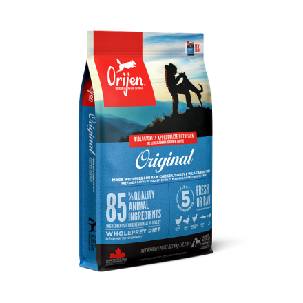 Orijen hondenvoer Original is rijk aan scharrelkip en kalkoen, in het wild gevangen vis en scharreleieren, vers geleverd in verzorgende WholePrey verhoudingen. Boordevol hoogwaardige voedingsstoffen, helpt Orijen jouw hond gezond en sterk te houden.