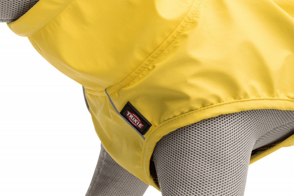 De TRIXIE regenjas Vimy is een opvallende gele regenjas voor honden waarmee je je hond ook bij regen droog houdt.