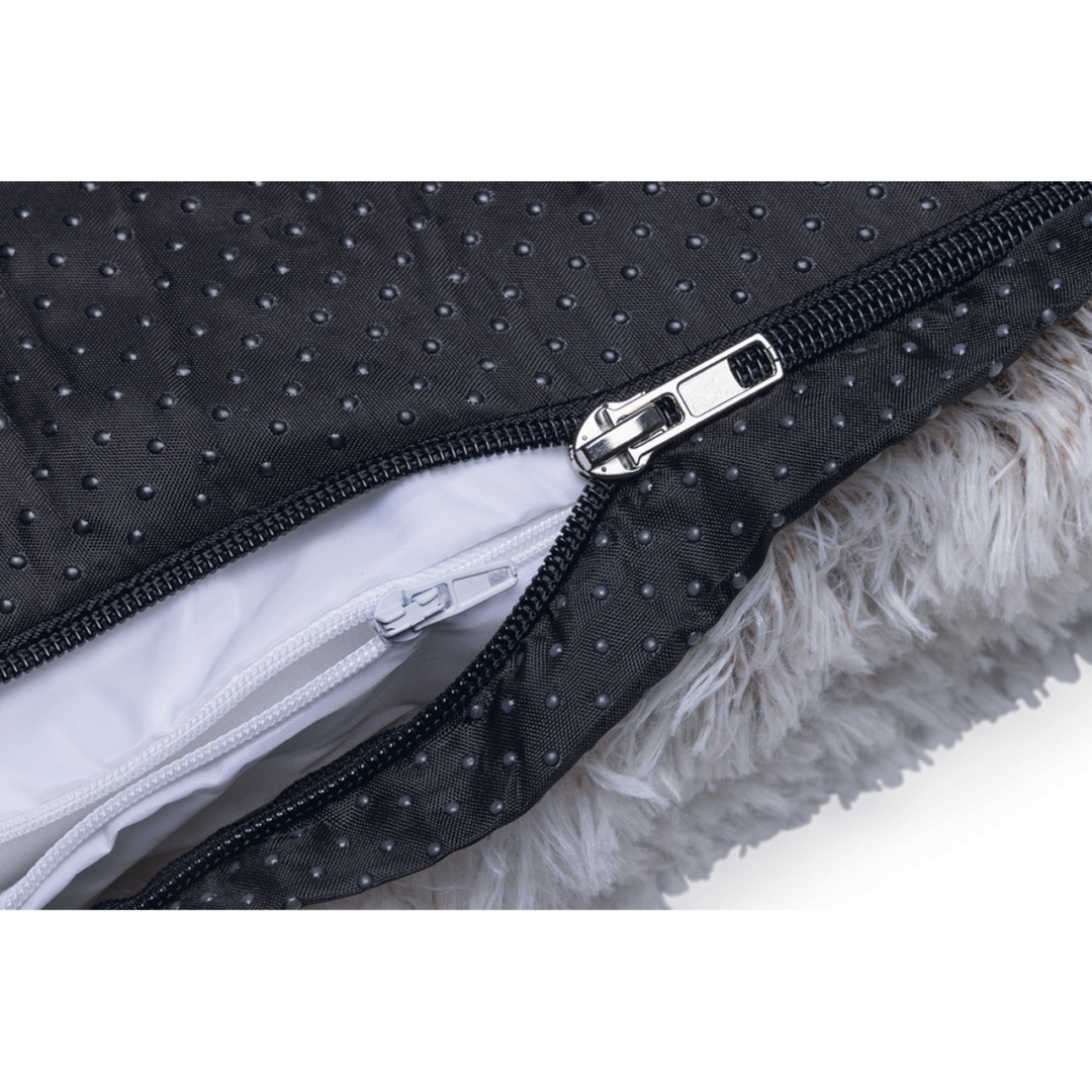 Het zachte, lange pluche maakt het kussen heerlijk knus en warm. De onderkant is voorzien van een antisliplaag, zodat het kussen stevig blijft liggen. Dankzij de ritssluiting kan de hoes eenvoudig worden verwijderd en gereinigd, en de waterdichte binnenhoes beschermt het schuim tegen vocht en vuil.