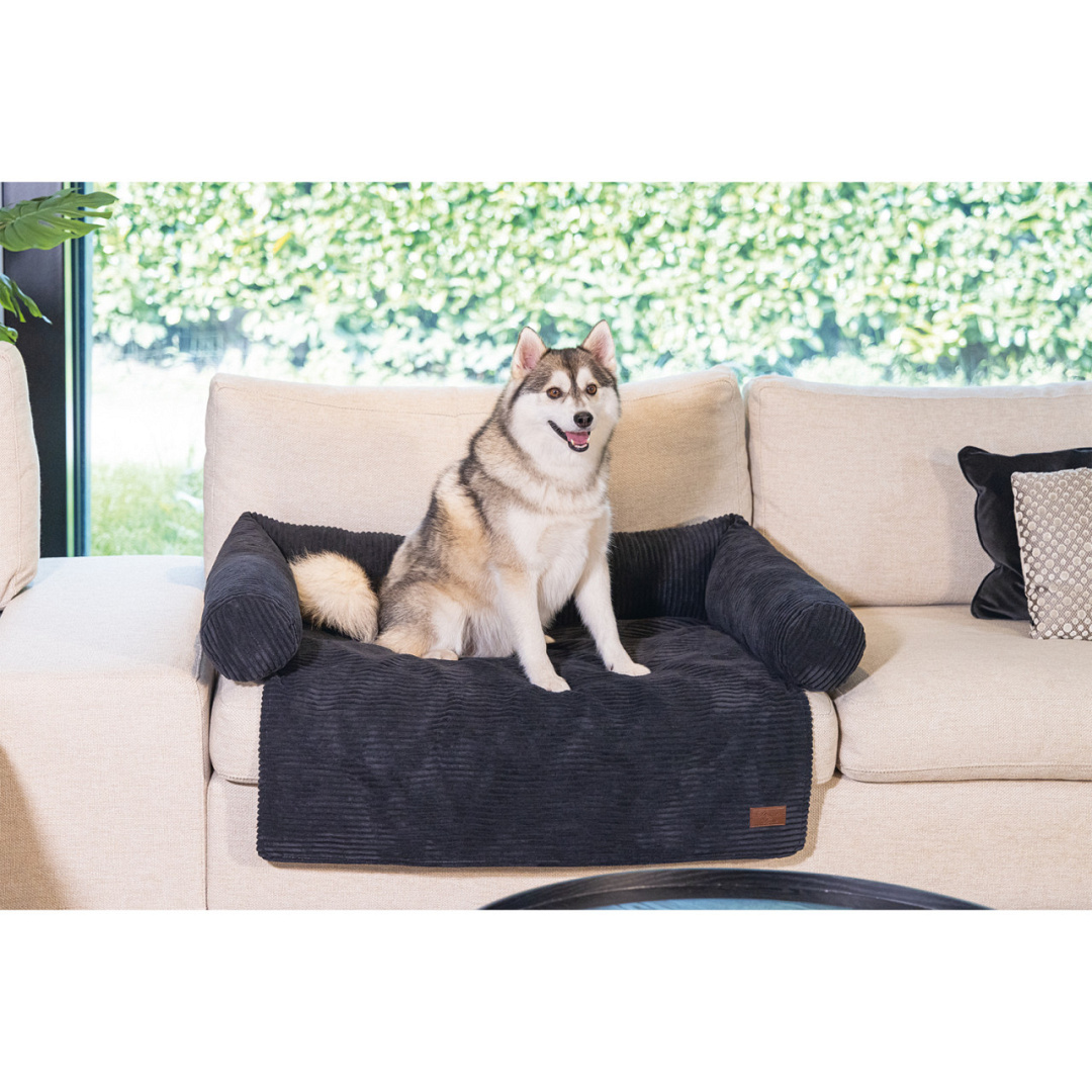 Het kussen is eenvoudig neer te leggen op de bank. Het verlengstuk zorgt ervoor dat ook de voorzijde van de bank beschermd wordt. De opstaande randen van het kussen, gevuld met schuim, geven jouw hond een fijn beschermd gevoel en bakeren tegelijkertijd de rest van de bank af. Zo kun je jouw hond aanleren dat hij of zij alleen op het kussen op de bank mag liggen.
