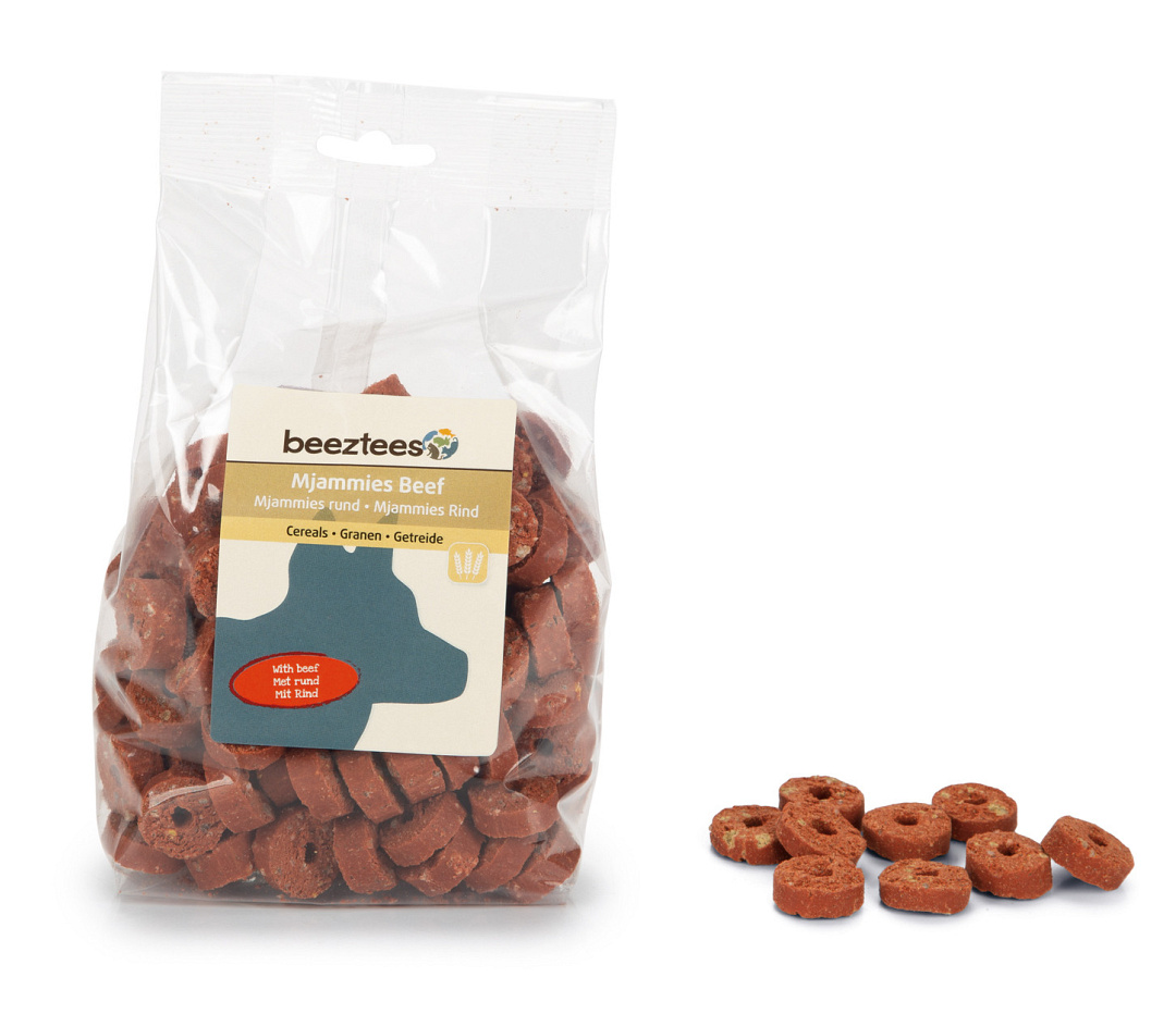 Deze Beeztees Mjammies Rund is de ideale snack om jouw hond te trakteren. Deze snack is gemaakt van graan waaraan rund is toegevoegd, erg lekker voor jouw hond!