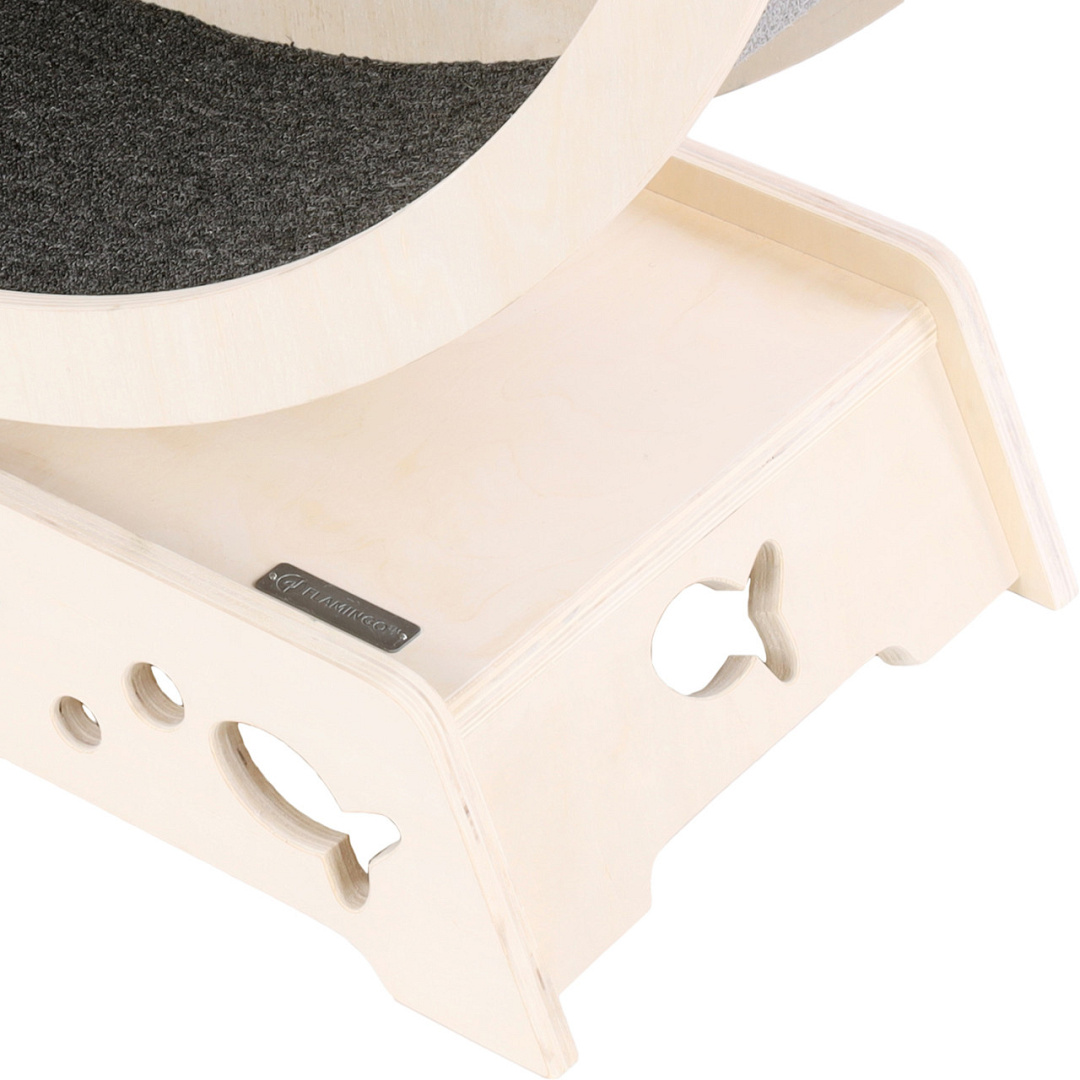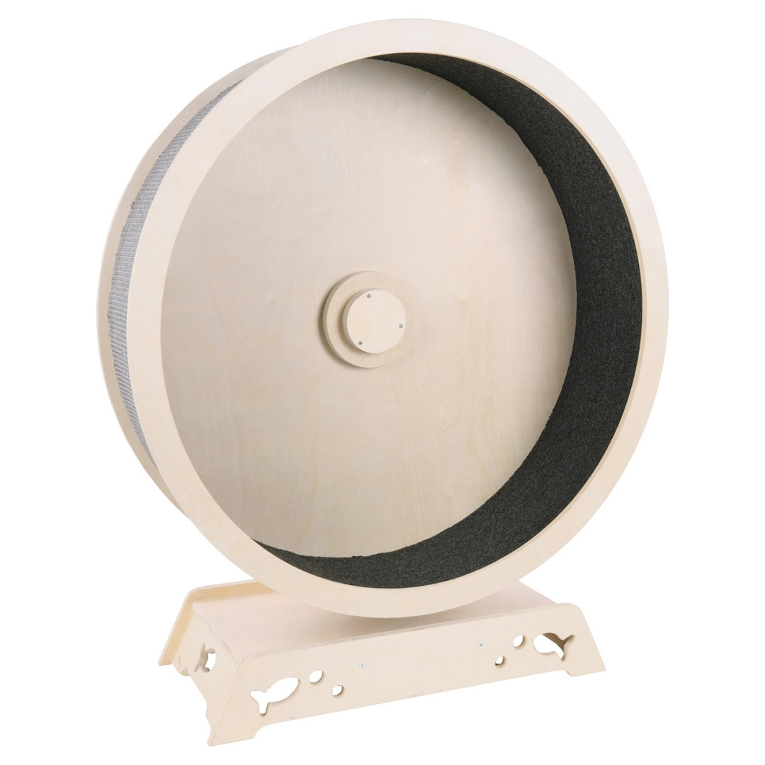 Laat je kat rennen en spelen met dit lichtbruine looprad Eksi. Gemaakt van hout en textiel, met een sisal krabmat aan de buitenkant en een bekleed loopvlak binnenin. Geluidsarm en perfect voor urenlang speelplezier!