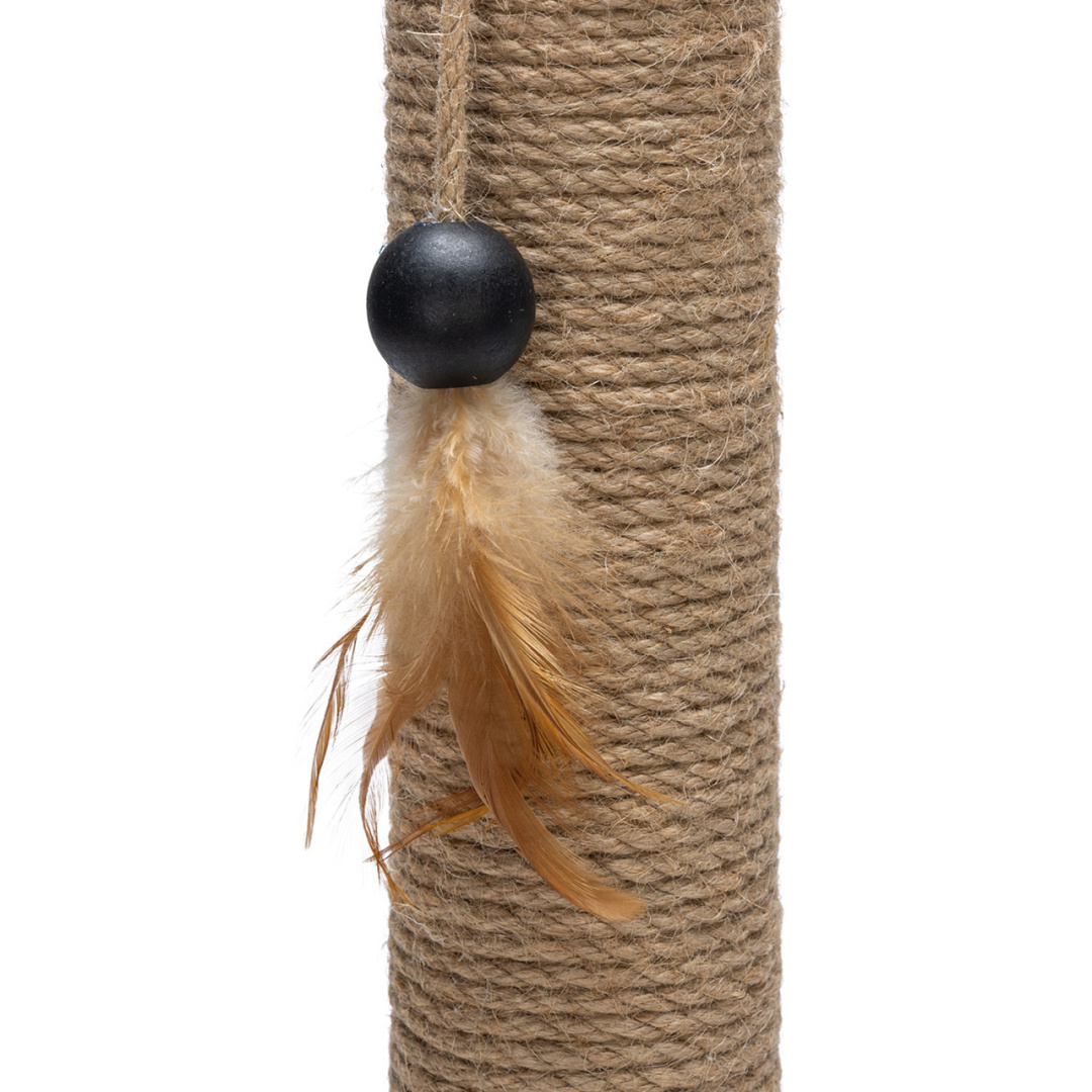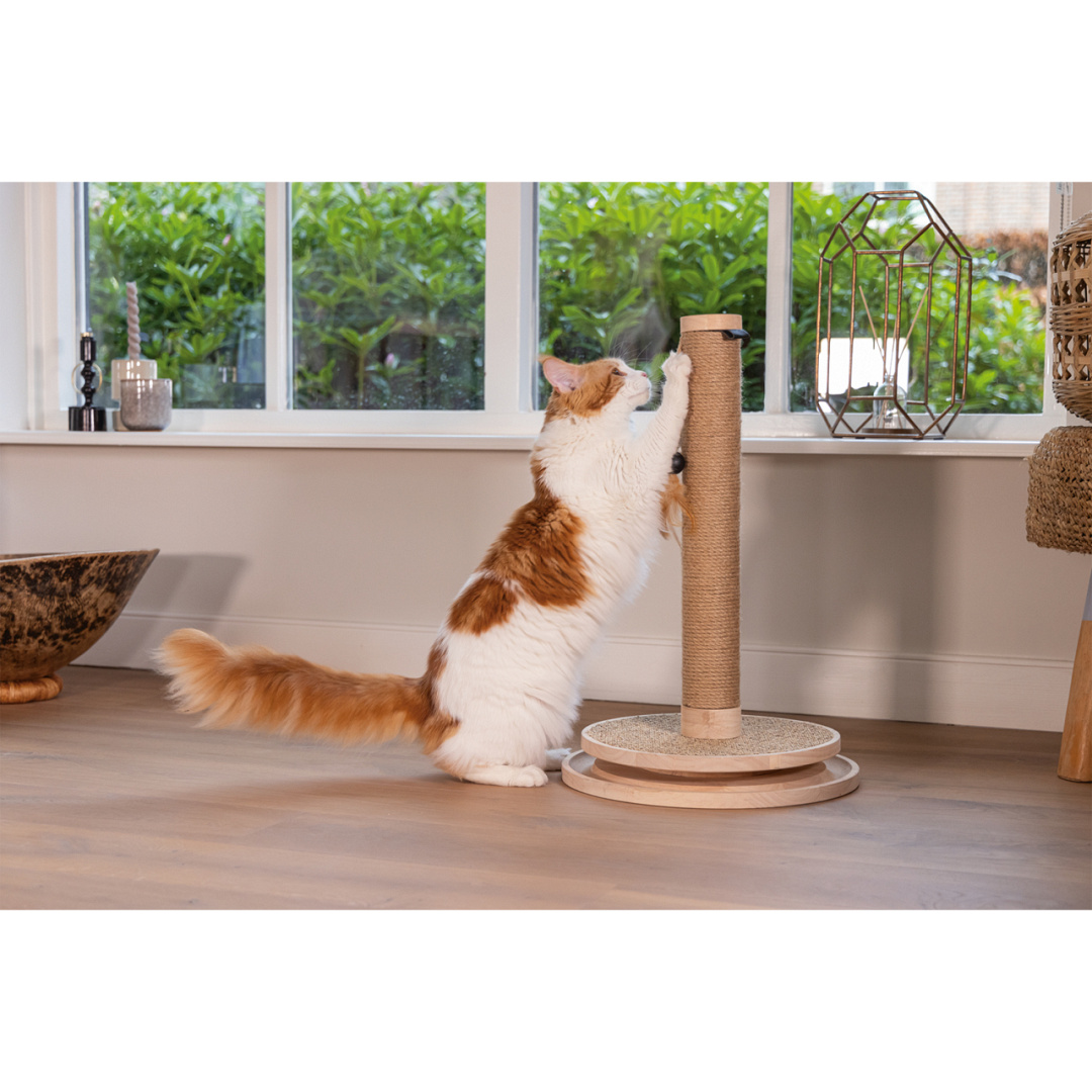 Om ervoor te zorgen dat jouw kat zijn of haar nagels kan verzorgen en bovendien het territorium kan afbakenen, is de krabpaal voorzien van jute touw. De voet van de krabpaal beschikt over een sisal krabmat. Beide krabelementen zorgen ervoor dat jouw kat zowel horizontaal als verticaal kan krabben. De krabpaal zelf is gemaakt van rubberhout, waardoor deze een prachtige natuurlijke uitstraling heeft.