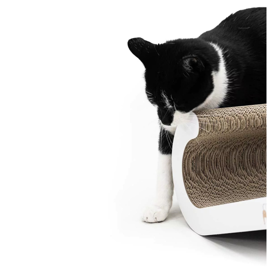 Het Petrebels krabkarton Scratch 'n Rebel Bella 60 combineert hip design met ultiem krabplezier voor jouw kat. Dit krabmeubel van gerecycled karton heeft sierlijke lijnen en past daardoor moeiteloos in elk interieur. Dit kartonnen krabmeubel ziet er niet uit als kattenspeelgoed, maar voor je kat is dit pure luxe. Bella 60 is namelijk gemaakt van hoogwaardig karton en ontworpen voor katten die graag horizontaal krabben. Het golvende oppervlak is ideaal om nagels te scherpen, spieren te strekken én om op te relaxen. Je kat blij maken? Geef hem dit kartonnen krabmeubel dan cadeau!