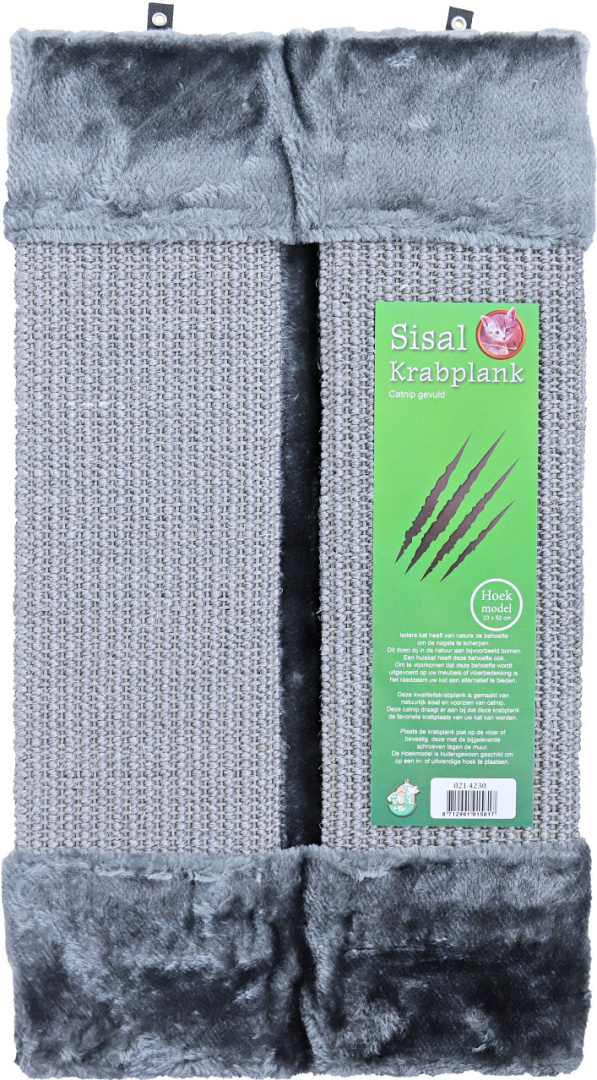 Krabplank van sisal en pluche. Bevat catnip voor extra krabplezier. Kleur niet vrij te kiezen.