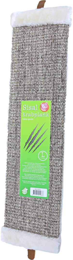 Krabplank van sisal en pluche. Bevat catnip voor extra krabplezier. Kleur niet vrij te kiezen.