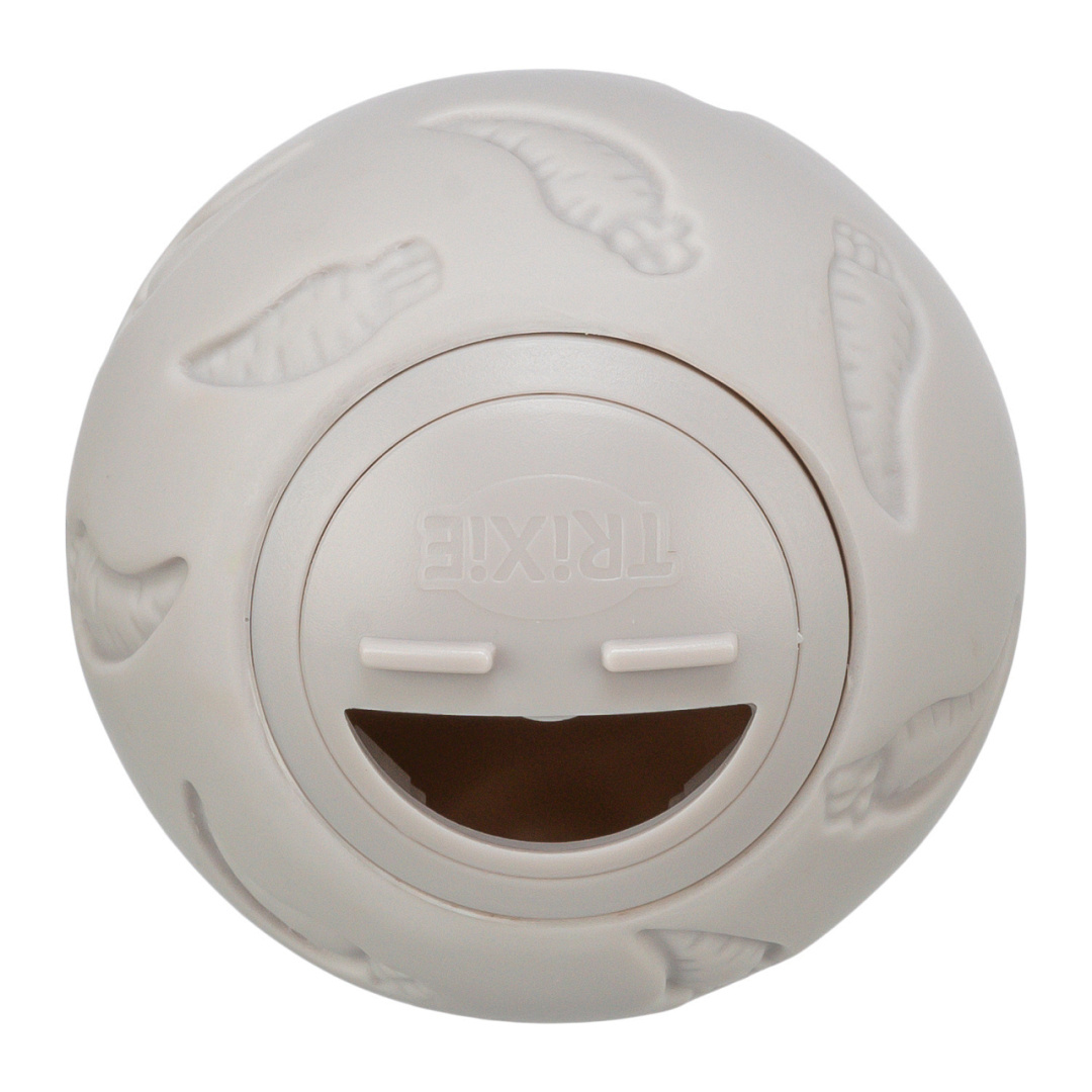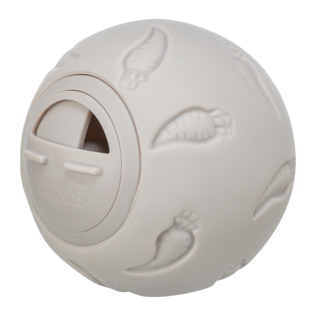 De Trixie Snackbal voor konijnen is gemaakt van kunststof en heeft een verstelbare opening om de hoeveelheid beloningssnoepjes te kunnen doseren. Door de bal te laten rollen vallen de snacks eruit.